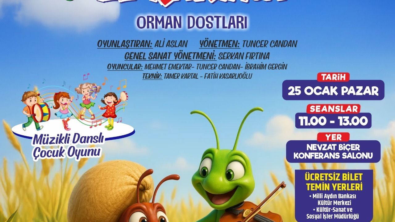 25 Ocak Pazar günü Nevzat Biçer Konferans Salonu’nda sahnelenecek oyunlardan “Ağustos Böceği ile Karınca – Orman Dostları” saat 11.00 ve 13.00’te minik izleyicilerle buluşacak. “Doğa Dostu Heidi” ise aynı gün saat 15.00 ve 17.00’de sahnelenecek. Oyunlar, çocukların sanata erişimini artırmak amacıyla ücretsiz olarak gerçekleştirilecek. Ücretsiz biletler, Milli Aydın Bankası Kültür Merkezi ile Efeler Belediyesi Kültür ve Sosyal İşler Müdürlüğü’nden temin edilebilecek.