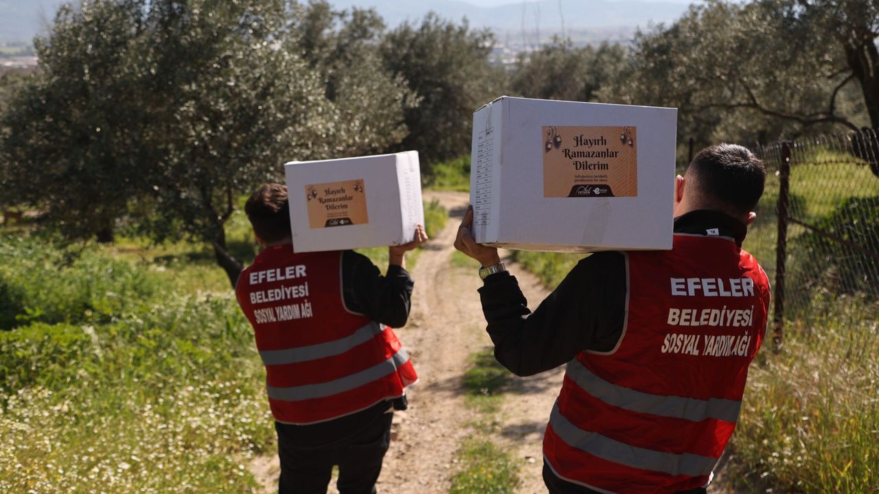 Efeler Belediyesi Sosyal Yardım Ağı (EFESYA) bünyesinde görev yapan ekipler, hazırlanan kapsamlı gıda kolilerini büyük bir titizlikle ulaştırıyor. Yardımları ulaştırırken hassasiyetiyle hareket eden ekipler, vatandaşların kapısını sadece bir paket bırakmak için değil, birer kardeş selamı iletmek için de çalıyor.