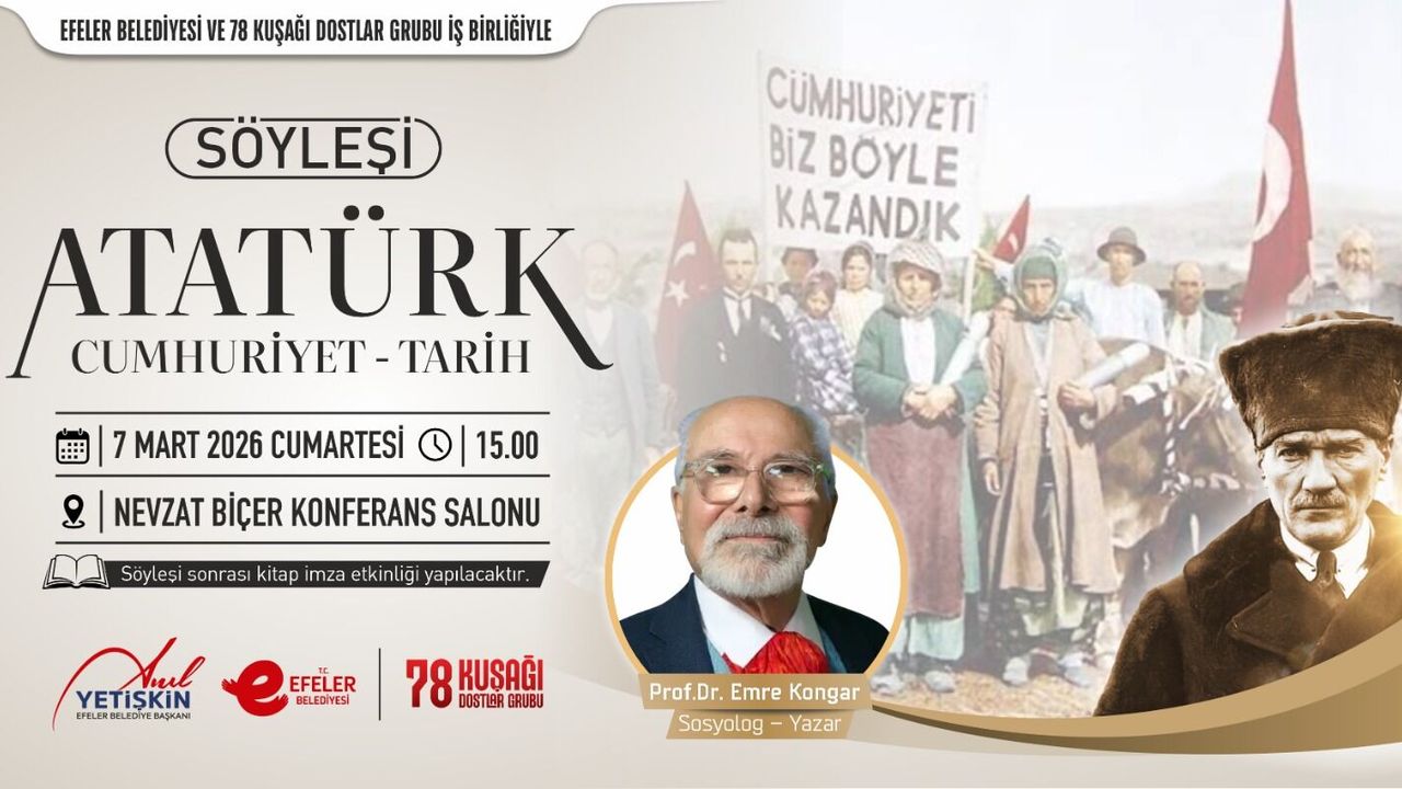 7 Mart 2026 Cumartesi günü saat 15.00’te Nevzat Biçer Konferans Salonu’nda gerçekleştirilecek etkinlik, Efeler halkına hem düşünsel hem de kültürel bir buluşma imkanı sunacak. Söyleşinin ardından Prof. Dr. Kongar, okurları için kitap imza etkinliği de gerçekleştirecek.